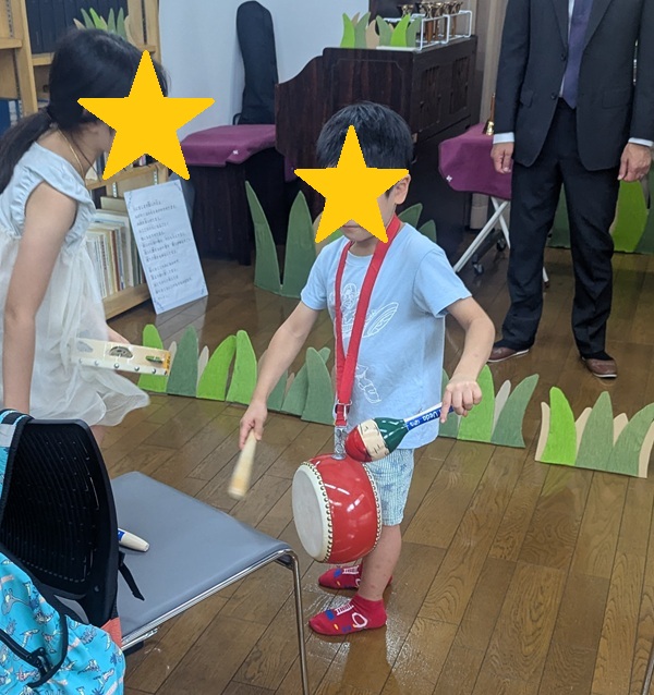 今日も、讃美歌に合わせてマラカスやタンバリン、たいこも元気に鳴っていましたよ