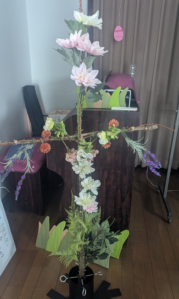 その十字架に、子ども達の手で草や花が芽生えました